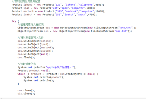 oos.writeObject(good1); // 将对象写入到文件中,也实现了一个持久化的存储