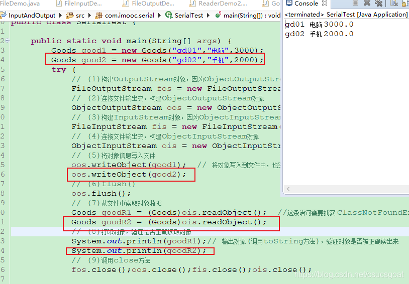 Goods类时待序列化和反序列化的类,其需要实现Serializable接口