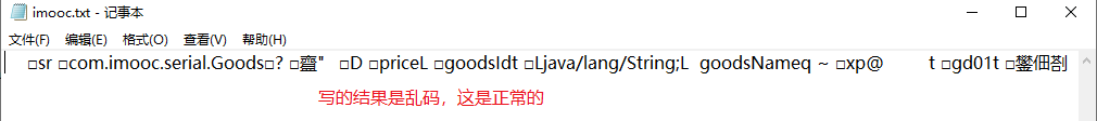 对象输出流写到文件中的东西,其本身不是文本数据,是对象序列化后的数据,所以乱码是正常的;
