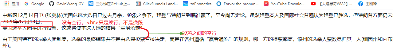 (2)<br>标签:换行,不换段;<p>标签会让不同段落之间有一定空行;<br>不会,换行后的内容还是一个段落;