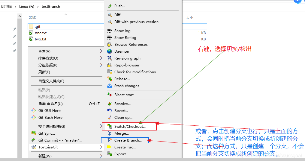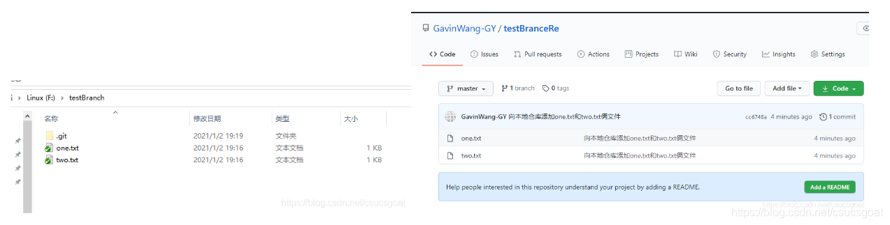 为了演示:我们创建了一个本地仓库testBranch,一个远程仓库testBranchRe: