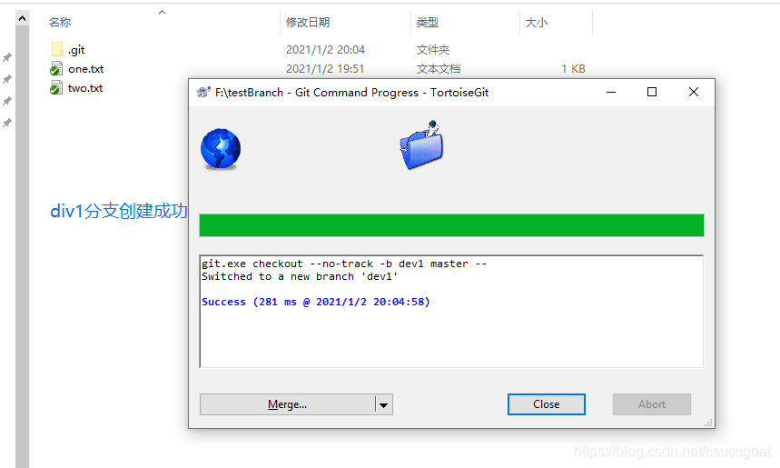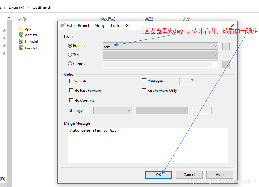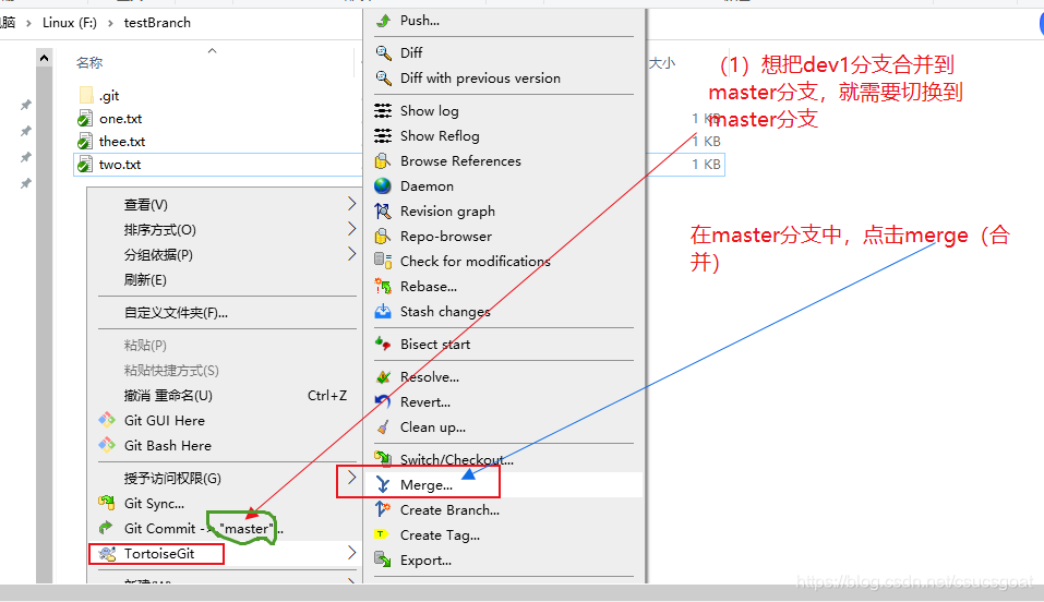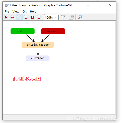 此时,dev1分支中已经完成了一个功能(或者修改已经够了),想把dev1分支合并到master分支中: