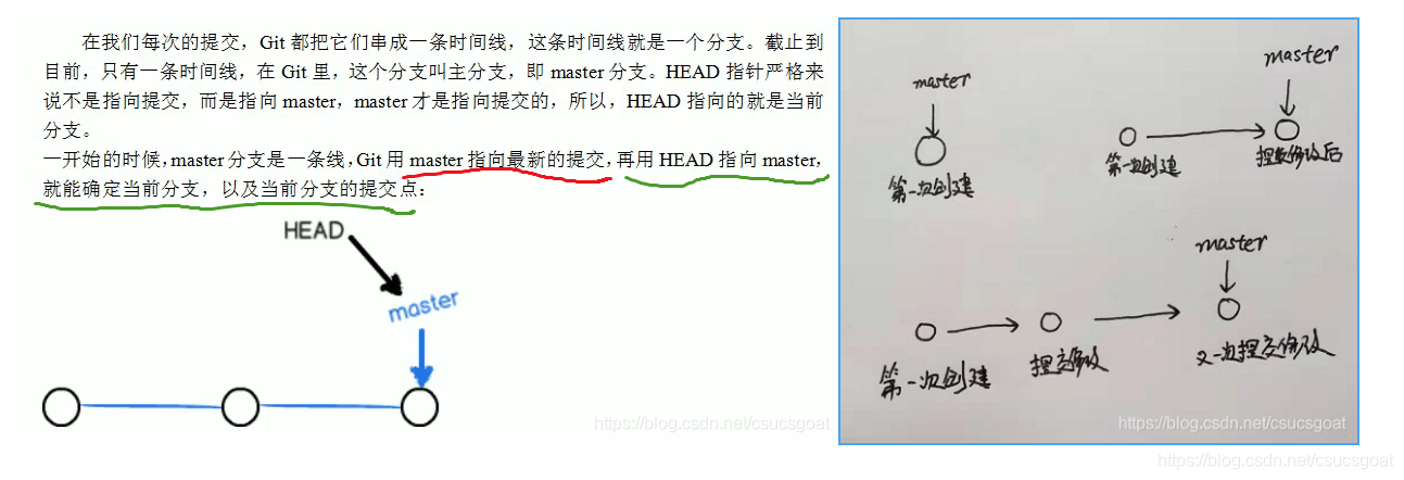2.每次提交,master就会向后移动一个节点,形成一个链,记录每次修改的日志信息