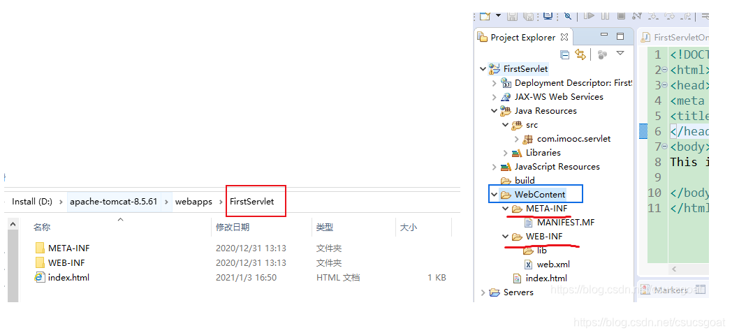 ● IDE中的工程结构,webapps发布目录下的文件结构: