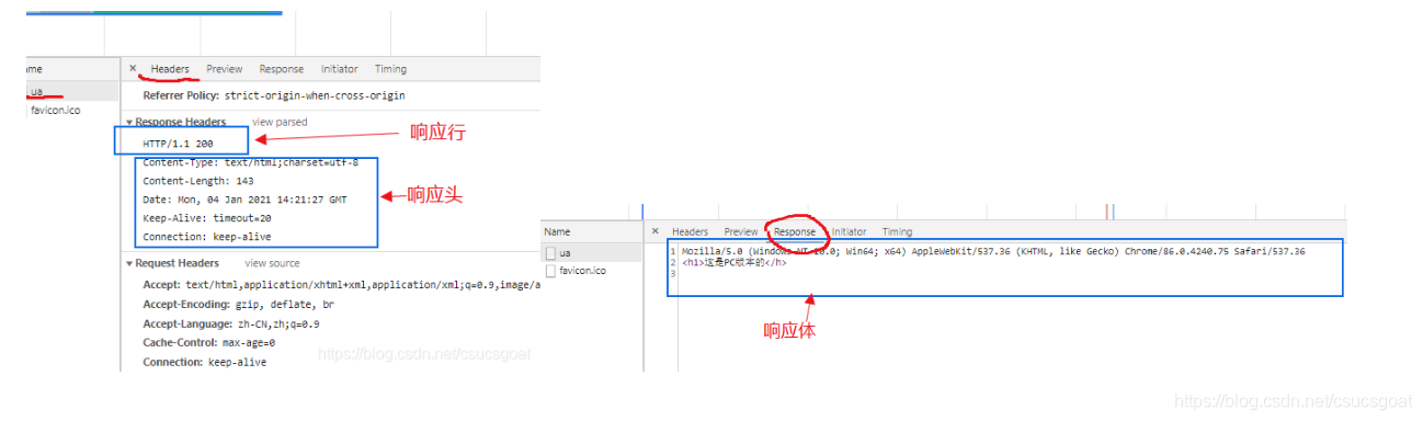 即在上面几个部分中:响应行,响应头,响应体分别是: