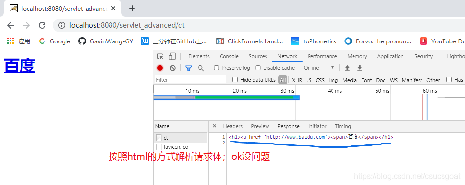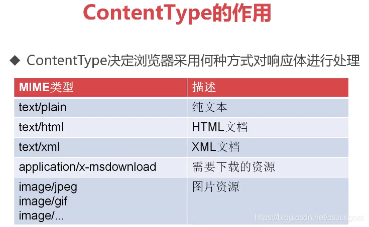 浏览器可以理解成是一个解释器(解释响应体中的内容,并现在浏览器页面上);Content-Type属性值,就是浏览器对响应体内容采取何种方式;其默认是text/html;