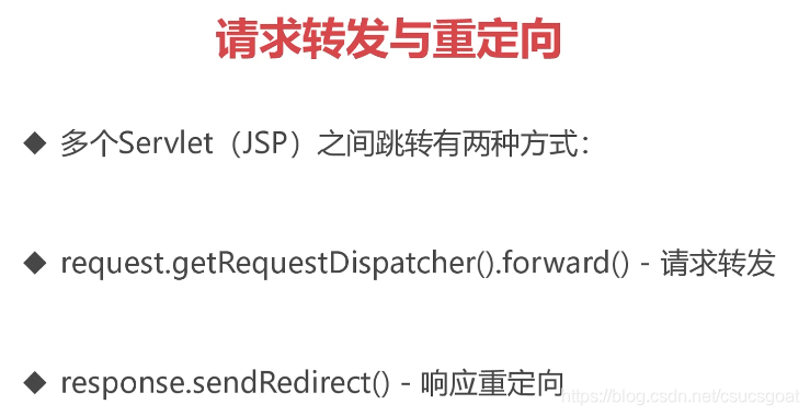 以前接触的都是一个Servlet;而实际情况中,是需要多个Servlet之间跳转的,而Servlet之间的跳转方式分为:请求转发和响应重定向;