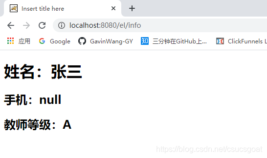 效果:EL表达式中,当一个对象为null的时候,其输出会是“”空字符串,而不是null,这点就比Jav