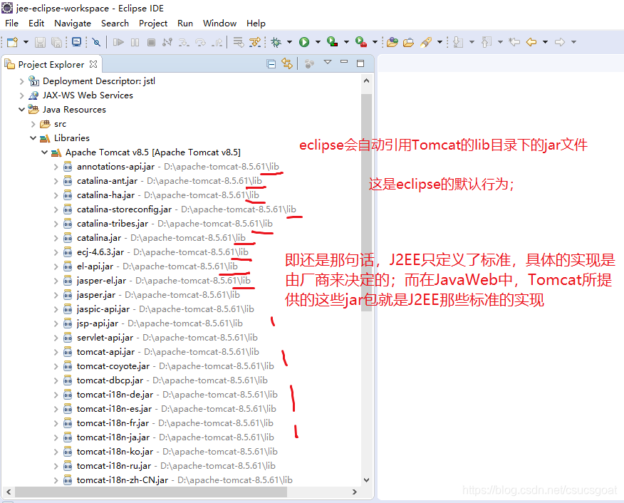 在使用EL的时候,没有下载任何组件、jar包啥的;这是因为,新版的JSP默认把EL表达式作为标准的实现,开发者直接拿来用就行了;