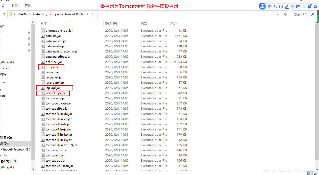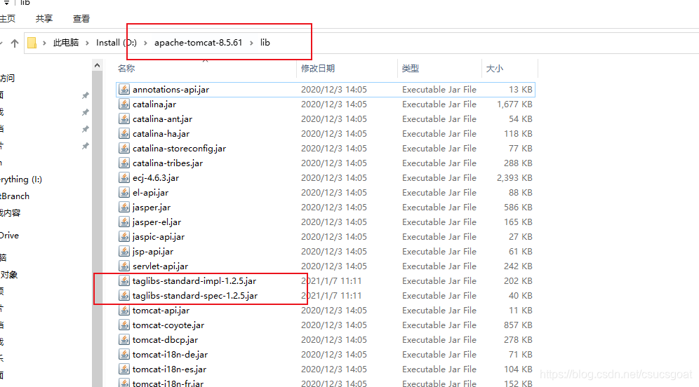 方式二:将jar文件复制到Tomcat安装目录的lib目录:这种做法是全局设置,让以后的web项目,自动的支持JSTL;