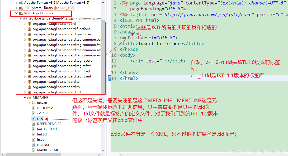 本篇博客主要介绍,JSTL标签库的设置和背后的原理;不涉及JSTL核心标签库中标签的使用方法。