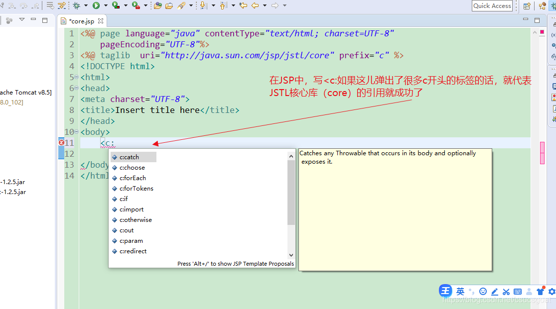 上面两件事做完之后,jstl核心标签库就可以用了,验证一下: