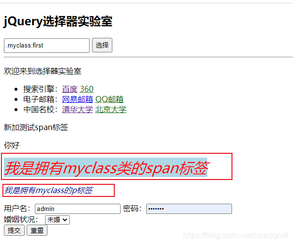 示例1:获取class=“myclass”的第一个元素:.myclass:first
