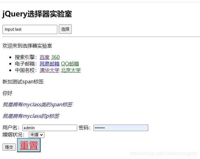 (3):password选择所有密码框,即type=password-集合元素;
