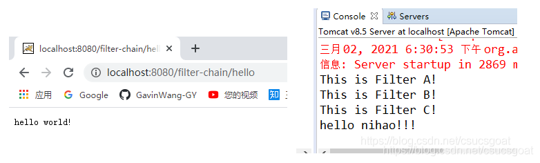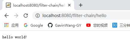 启动应用,访问localhost:8080/filter-chain/hello: