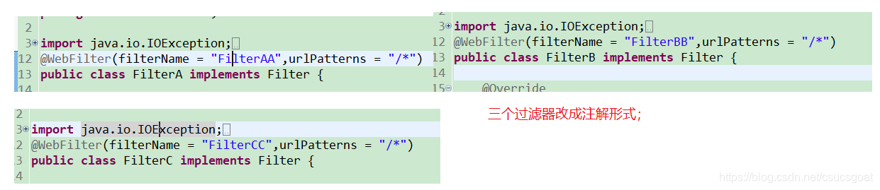 <filter-class>com.imooc.filter.FilterC</filter-class>