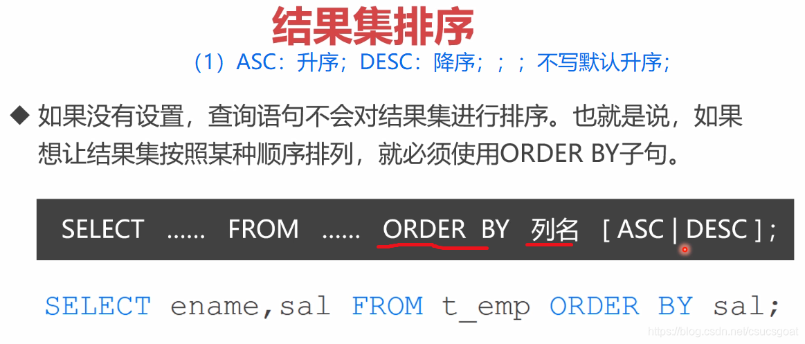 默认情况下,MySQL不会对结果集中的数据排序;如果我们想让结果集依照某个字段排序,数据库提供了ORDER BY字句来实现排序功能;