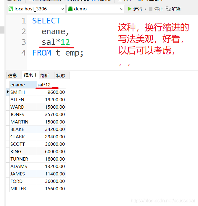 empno:员工编号;job:职位;sal:员工基本工资;comm:佣金;