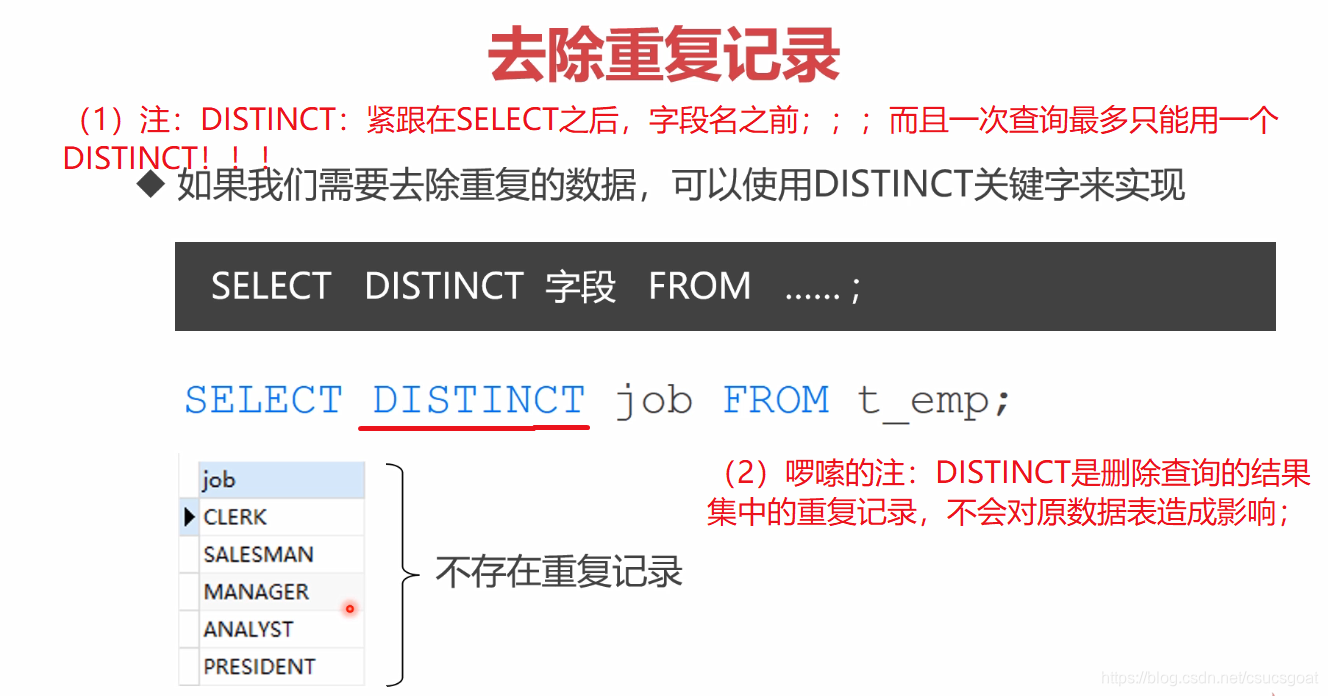 本文档详细讲解了SQL的基本查询技巧,包括字段重命名、LIMIT分页、ORDER BY排序、去除重复记录等,通过实例演示如何在t_dept、t_emp等表中高效查询和操作数据。