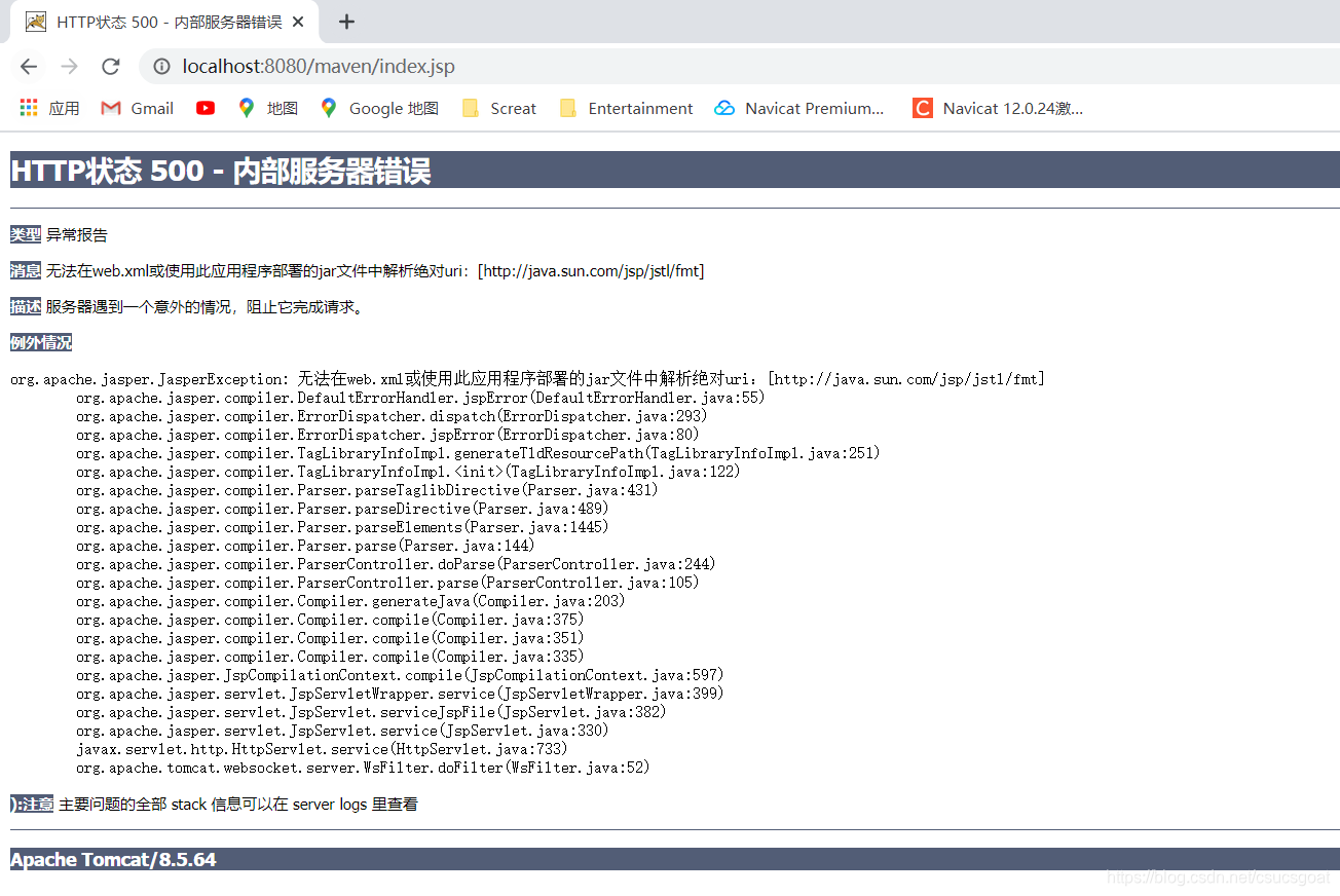 解决办法:将jstl的俩jar包添加进:lib目录下,并引入到当前项目中:
