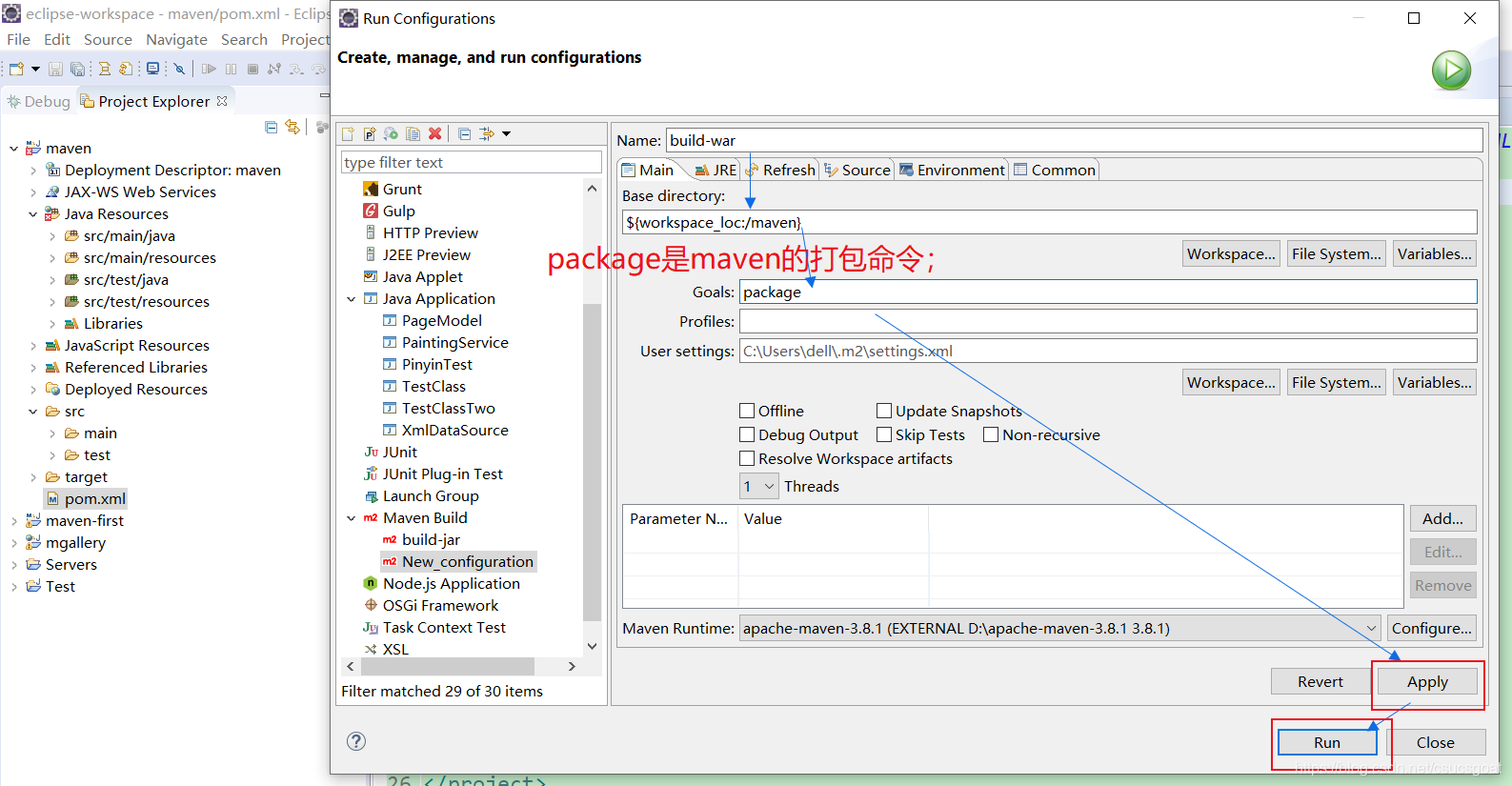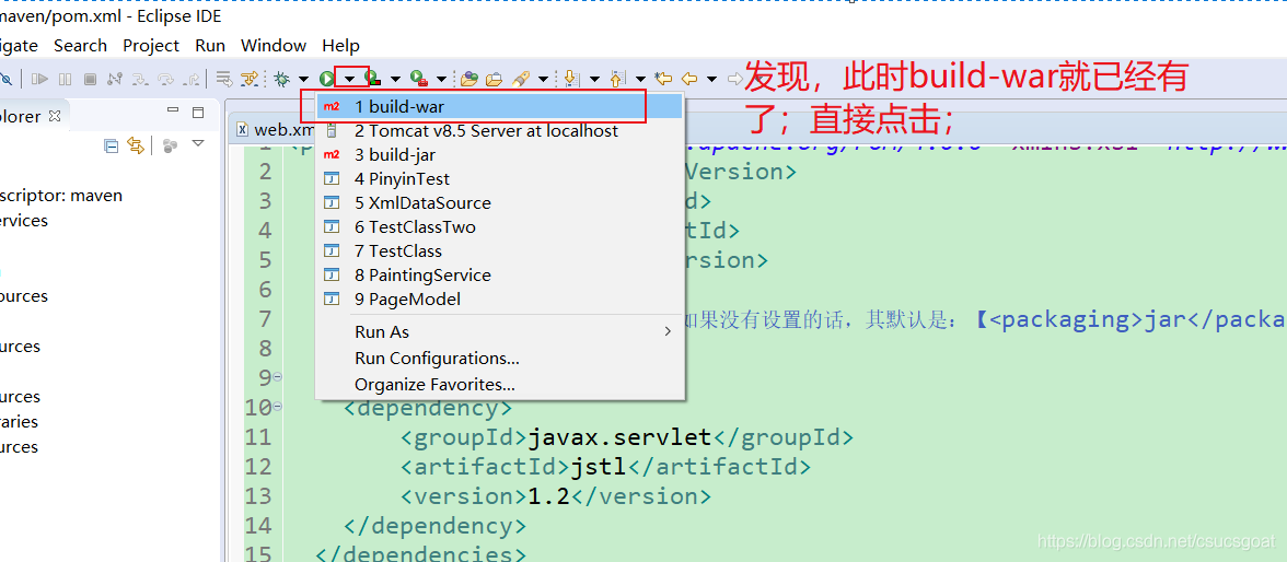然后,在Eclipse中新建一个执行命令,得到war包