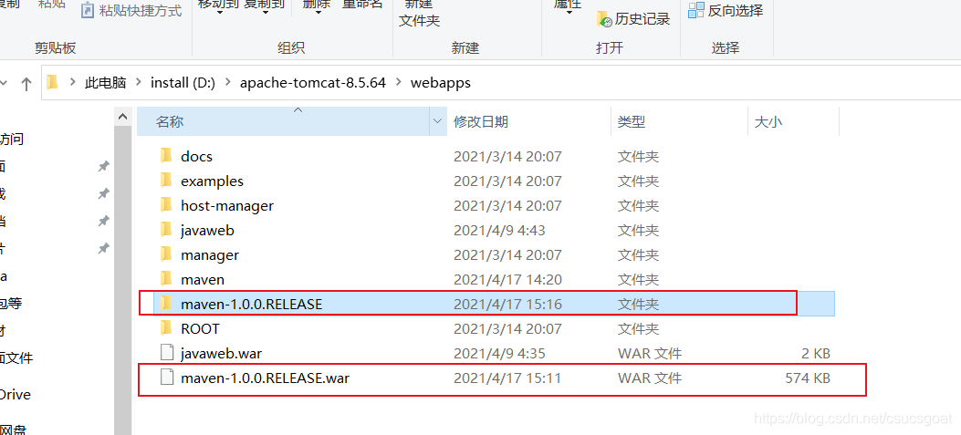 然后再去webapps目录下发现:生成了一个【maven-1.0.0.RELEASE】目录