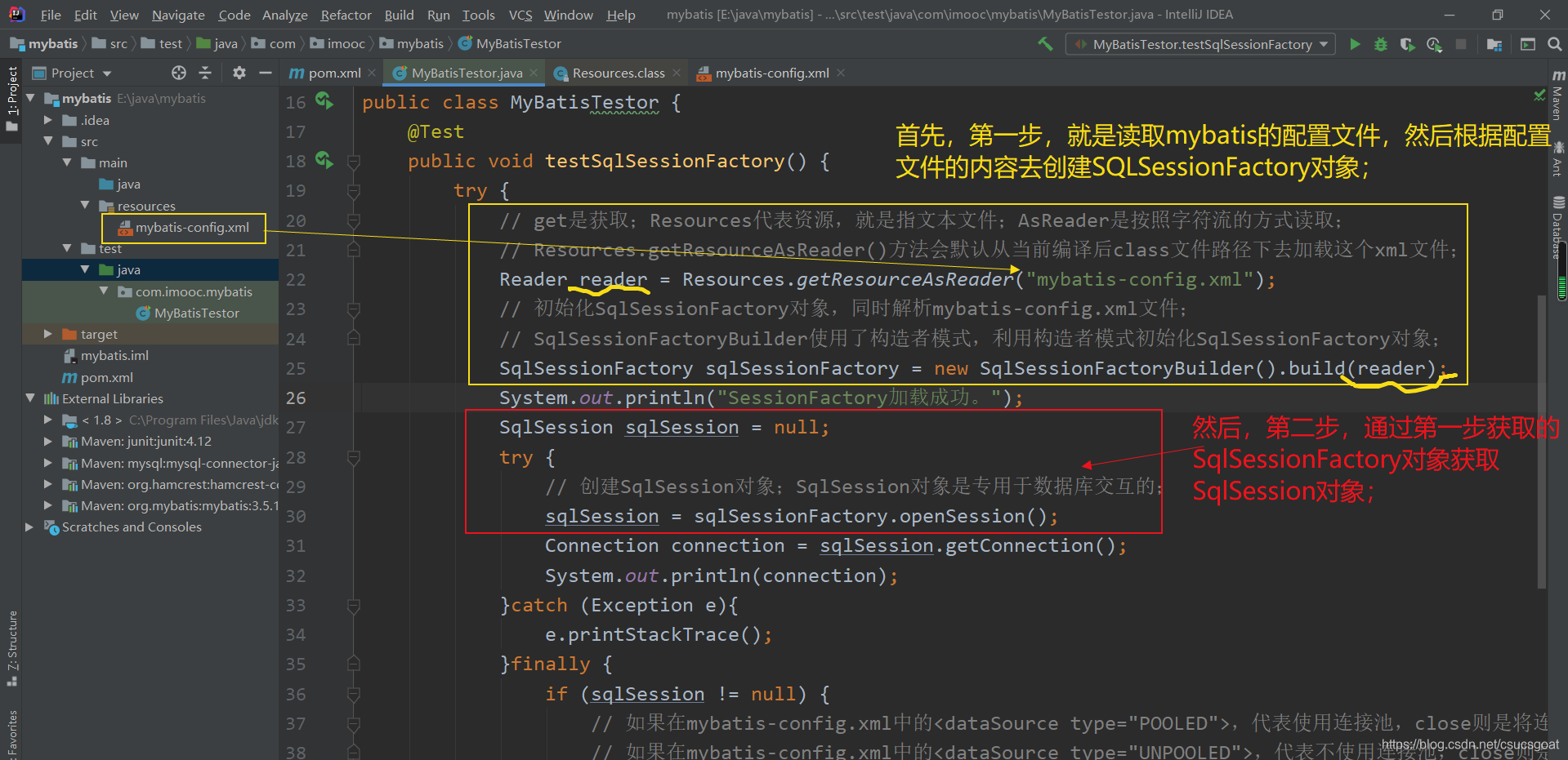 // Resources.getResourceAsReader()方法会默认从当前编译后class文件路径下去加载这个xml文件;