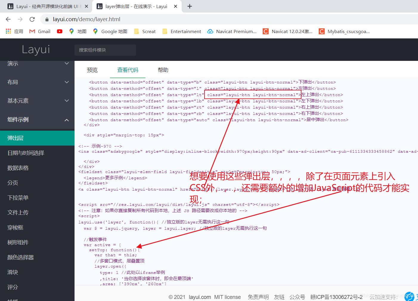 (2)总之,LayUI用起来很简单,我们只需要根据LayUI的官方文档,去灵活使用他提供的那些CSS的类就可以了。对比着LayUI的【开发使用文档】,对比着按需选用就好了。