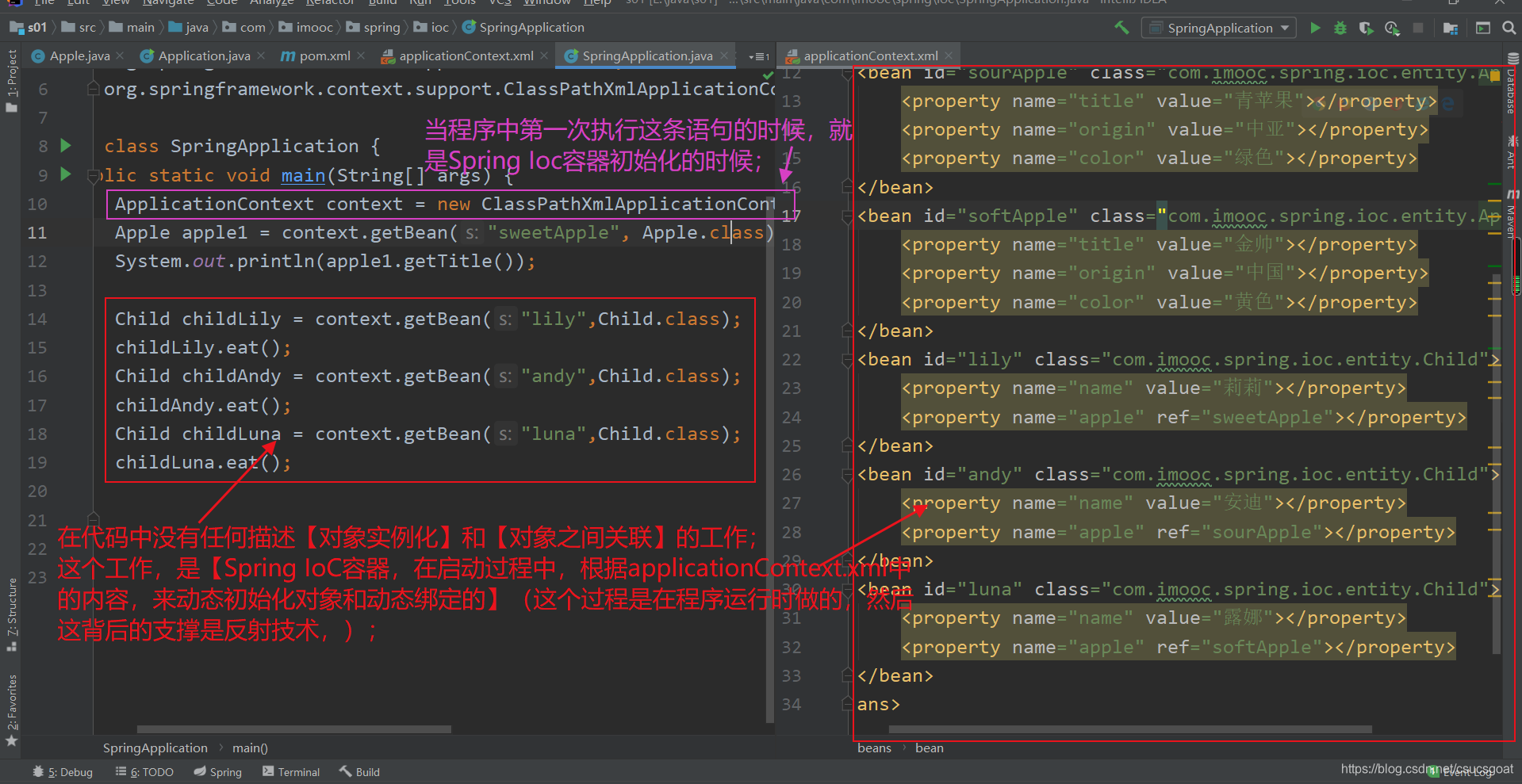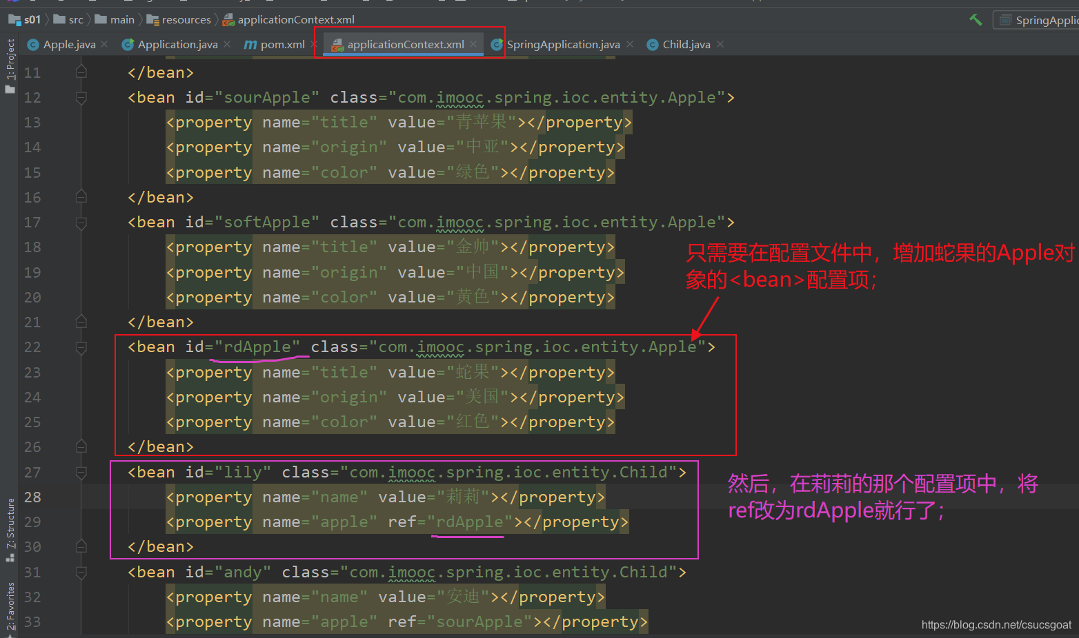 <bean id="sourApple" class="com.imooc.spring.ioc.entity.Apple">