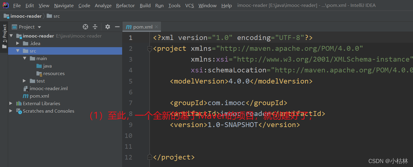 <?xml version="1.0" encoding="UTF-8"?> <project xmlns="http://maven.apache.org/POM/4.0.0" xmlns:xsi="http://www.w3.org/2001/XMLSchema-instance" xsi:schemaLocation="http://maven.apache.org/POM/4.0.0 http://maven.apache.org/xsd/maven-4.0.0.xsd"> <modelVersion>4.0.0</modelVersion> <groupId>com.imooc</groupId> <artifactId>imooc-reader</artifactId> <version>1.0-SNAPSHOT</version> <!--0.Maven国内阿里云镜像--> <repositories> <repository> <id>aliyun</id> <name>aliyun</name> <url>https://maven.aliyun.com/repository/