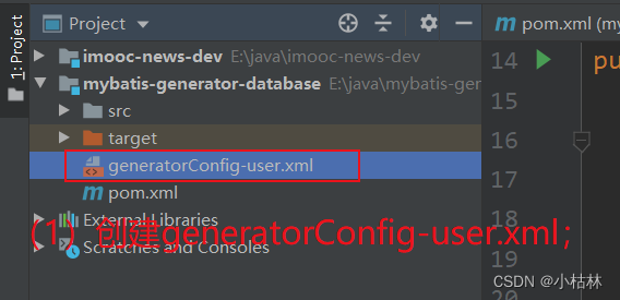 4.创建配置文件generatorConfig-user.xml,指定生成的内容和生成路径;