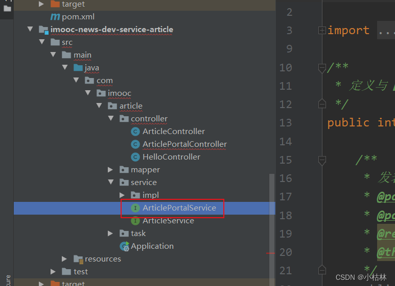1.在【article】文章服务中,创建ArticlePortalService接口,定义查询文章列表的方法;