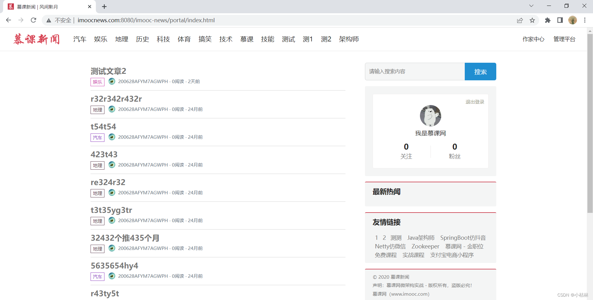 一:本篇博客内容:前台首页,显示文章列表;