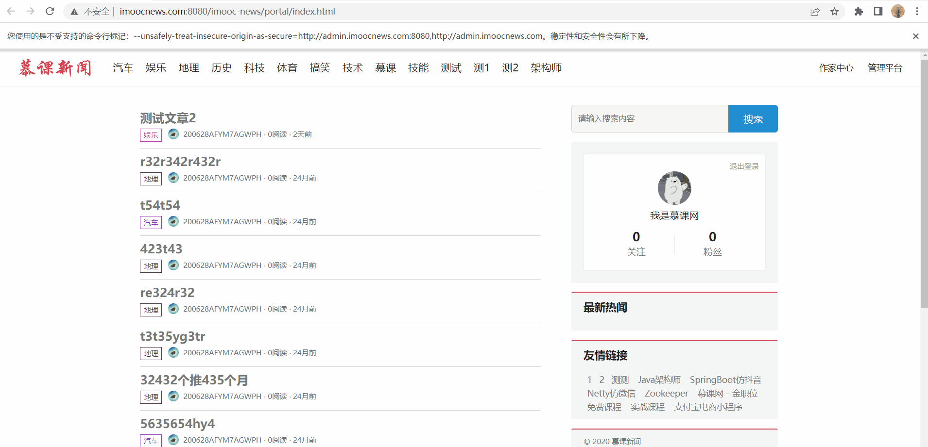 (1)本篇博客内容:前台首页展示文章列表;