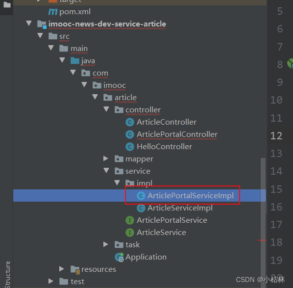 2.在【article】文章服务中,创建ArticlePortalServiceImpl类,去实现查询文章列表的方法;
