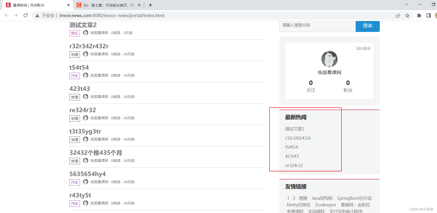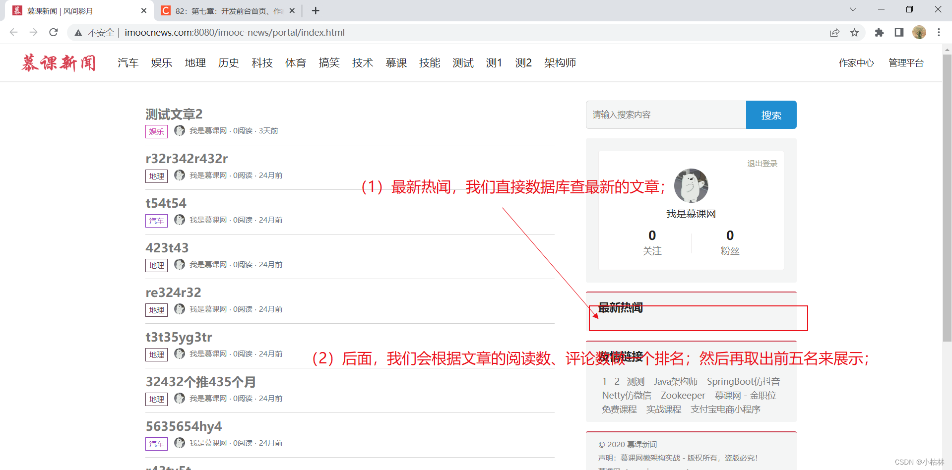 (1)本篇博客内容:前台首页展示最新热闻;