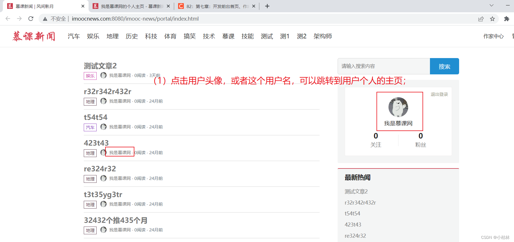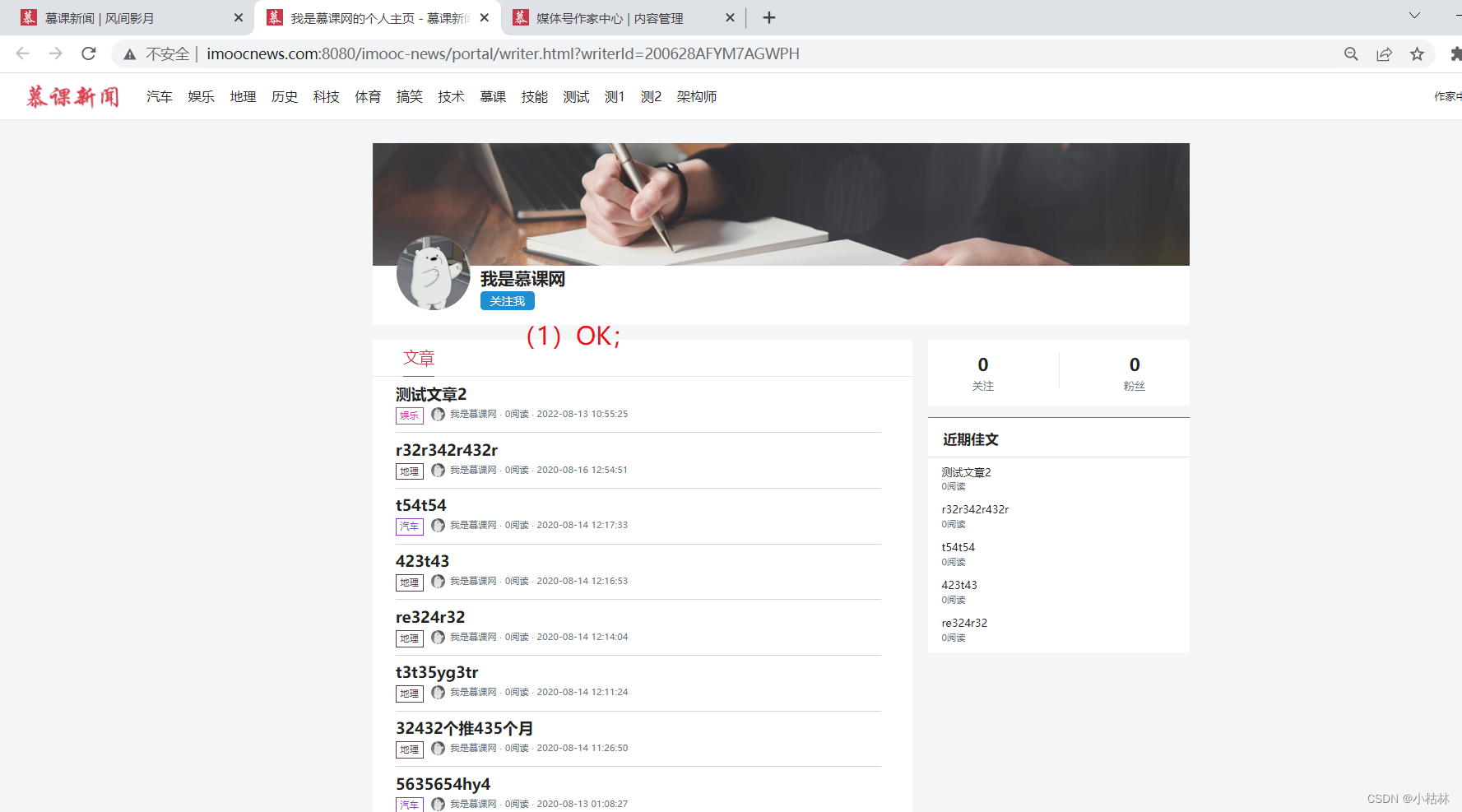 (1)本篇博客内容:作家个人展示页,展示该作者的可展示文章列表,近期佳文;