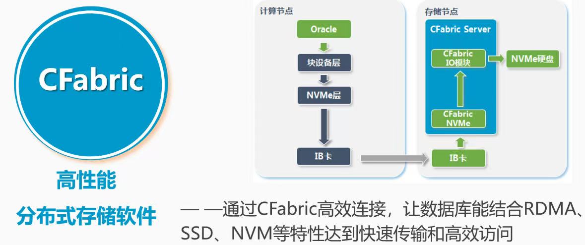 CFabric提供iSCSI、iSER、Nvme of fabric等多种协议,为上层数据库提供灵活的存储服务。