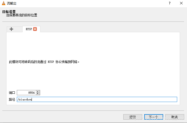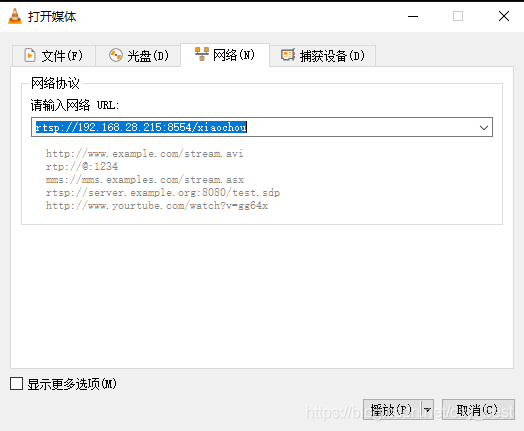 端口(8554)和路径(/xiaochou)见服务器第5步配置