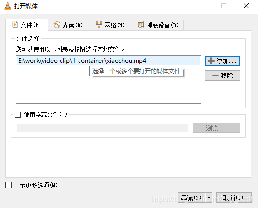 2.点击“添加”按钮选择流媒体文件,再点击“串流”