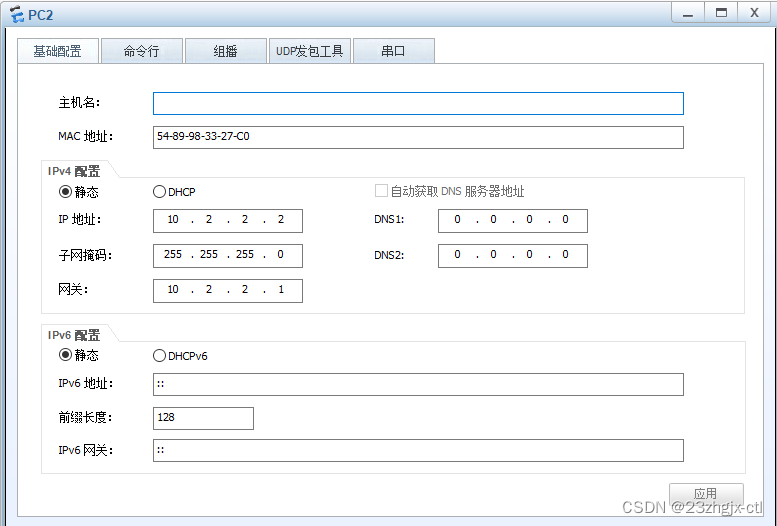 完成以上代码配置后使用pc1去ping设备pc2测试联通性。