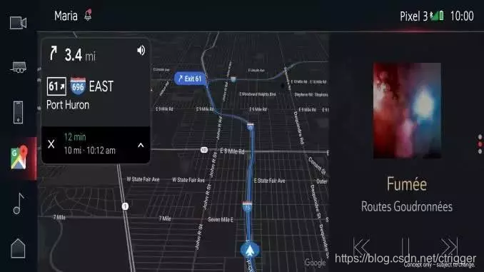 谷歌地图将于2021年整合到通用汽车娱乐信息系统中。地图将不断更新,实时交通信息帮助司机导航,并实现自动换道以及车道指引。(概念图)