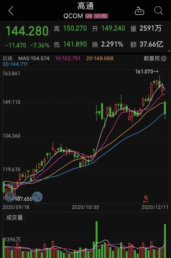 苹果加快芯片独立的脚步,芯片霸主高通公司大跌。