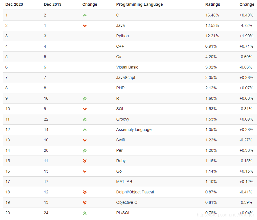 TIOBE will announce its programming language of the year 2020 next month. The programming language that got the highest increase in ratings in one year time will win this title. Python is far ahead with a positive delta of +1.90% at the moment. Runner ups are C++ (+0.71%), R (+0.60%) and Groovy (+0.69%). Chances are very low that any language will come close to Python this last month of the year. This means that Python is probably going to win the title for the fourth time, which is a record in the history of the TIOBE index. This month, there were also some interesting moves among the 5 high potential languages: Rust moved from position #25 to #21, Julia from #30 to #26, Dart from #27 to #31, Kotlin from #36 to #40 and TypeScript from #43 to #42. - Paul Jansen - CEO TIOBE Software