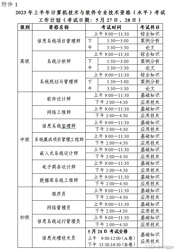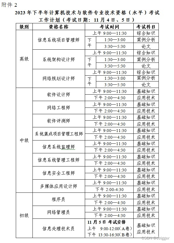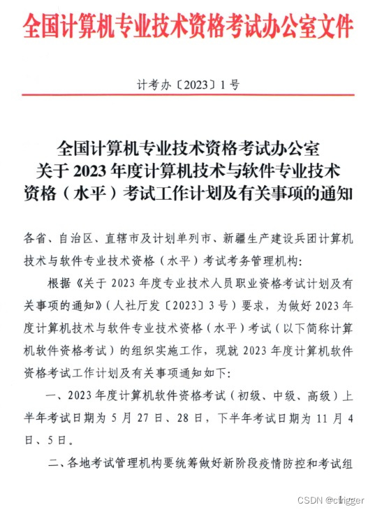 2023年度计算机技术与软件专业技术资格(水平)考试工作计划。