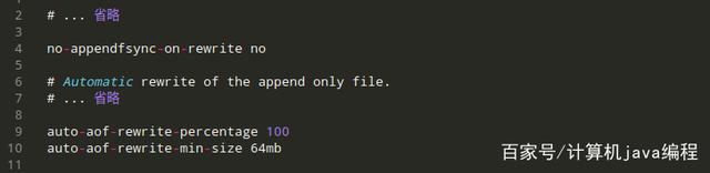 同样的也可以在redis.config中对重写机制的触发进行配置:通过将no-appendfsync-on-rewrite设置为yes,开启重写机制;auto-aof-rewrite-percentage 100意为比上次从写后文件大小增长了100%再次触发重写;