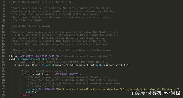 客户端向数据库发起 write 指令(数据在客户端的内存中);数据库收到 write 指令和对应的写数据(数据在服务端内存中);数据库调用将数据写入磁盘的系统调用函数(数据在系统内核缓冲区);操作系统将写入缓冲区中的数据写到磁盘控制器中(数据在磁盘缓冲区中);磁盘控制器将磁盘缓冲区中的数据写入磁盘的物理介质中(数据真正写入磁盘中)。上面只是简要介绍了一下过程,毕竟真实的缓存级别只会比这更多。不过我们可以从上面了解到,数据库在持久化的过程中主要应该去实现步骤3,也就是将原本在内存中的数据持久化到操作系统的内核缓冲区中。至于下面的两步,则是操作系统需要关心的事,数据库无能为力。数据库通常仅在必要的时候会去调用将数据从内存写入磁盘的系统调用。