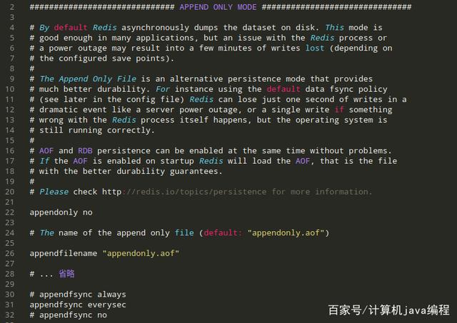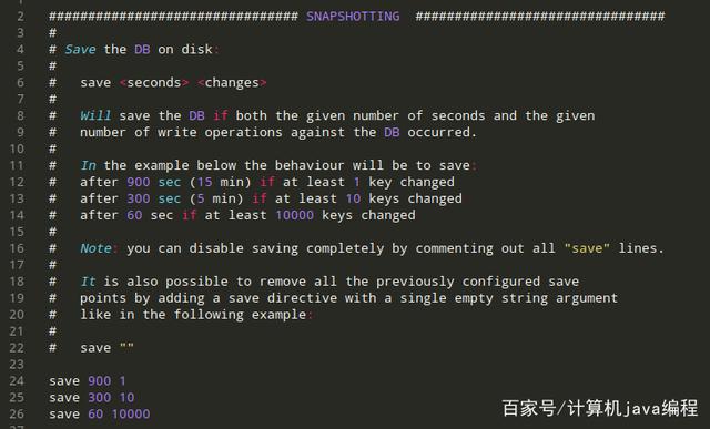 像上述这样在redis.config中进行配置,如save 900 1 是指在 900 秒内,如果有一个或一个以上的修改操作,那么就自动进行一次自动化备份;save 300 10同样意味着在 300 秒内如果有十次或以上的修改操作,那么就进行数据备份,依次类推。