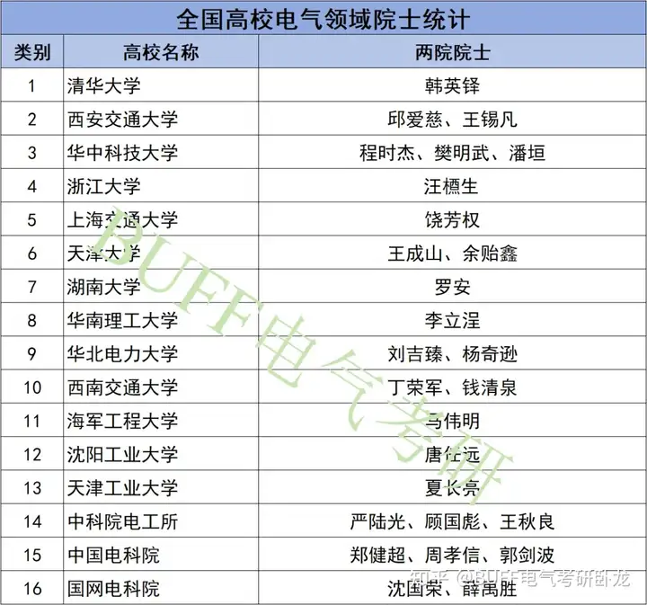 两院院士是我国科学技术方面和工程科技领域的最高荣誉称号。一名电气院士就足以引领一所高校电气学科的飞速发展。目前拥有电气领域两院院士的高校统计如下: