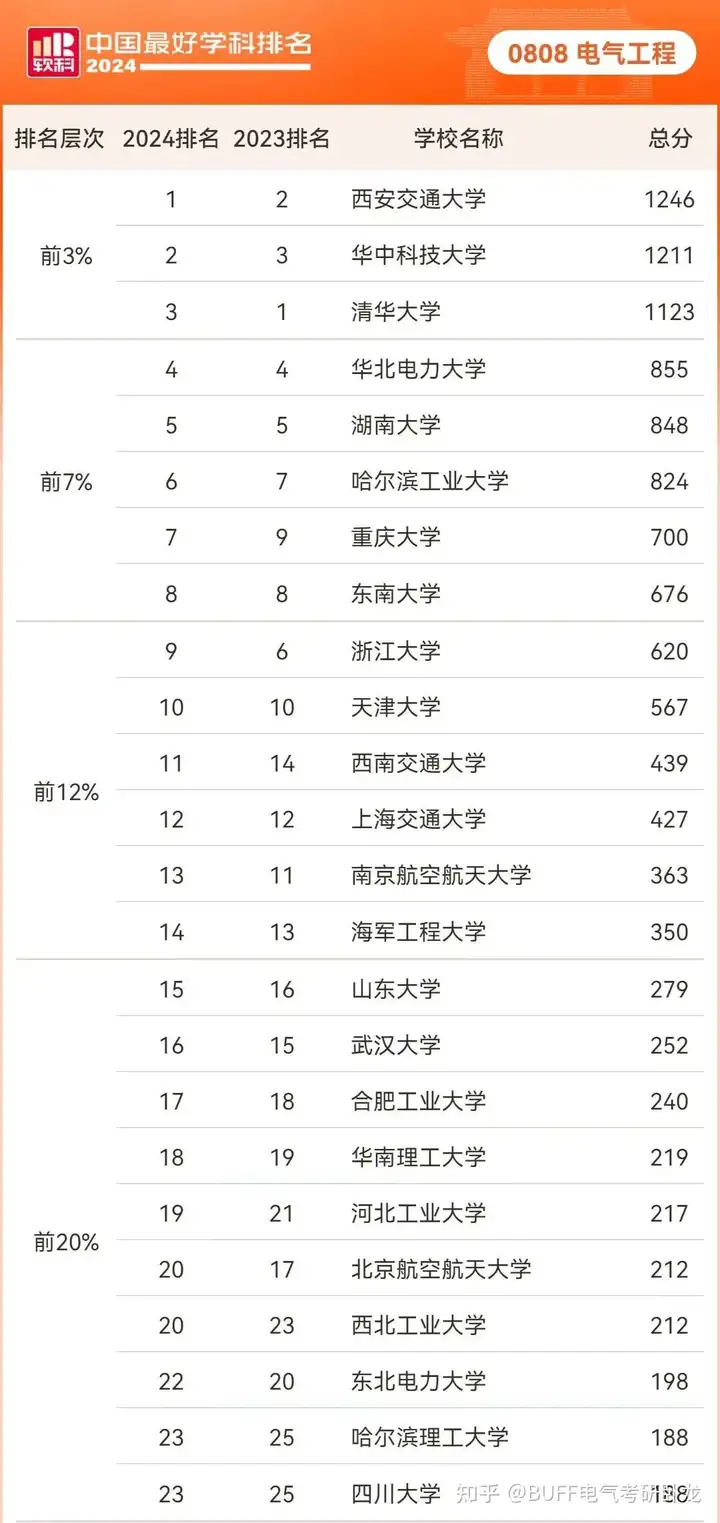2024年10月15日,高等教育评价专业机构软科发布2024软科中国最好学科——电气工程排名。这是目前最新、标准最清晰,且针对电气工程学科的排名。